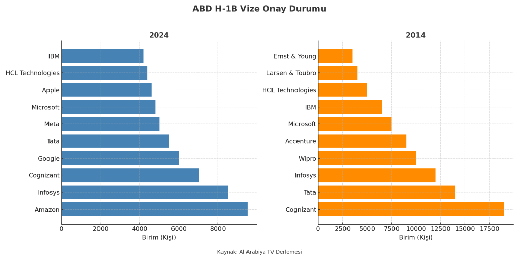Bir hesap yapalım; Hint yazılım devi Infosys, 2024 mali yılında 2504 H-1B ilk onayı aldı.
